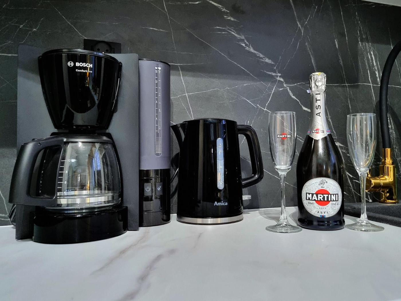 Oferta apartamentu obejmuje sypialnię (1), salon, kuchnię z pełnym wyposażeniem, w tym lodówką i ekspresem do kawy, a także łazienkę (1) z prysznicem oraz suszarką do włosów. W apartamencie zapewniono ręczniki i pościel.