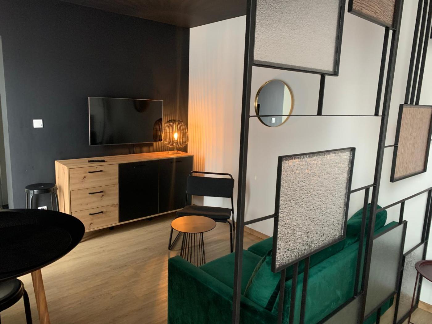 Apartament z 1 sypialnią. This apartment comprises 1 bedroom, a kitchen and 1 bathroom with a shower and a hairdryer. Meals can be prepared in the well-fitted kitchen, which comes with a stovetop, a refrigerator, a dishwasher and kitchenware. Featuring a balcony, this apartment also provides a washing machine, a wardrobe and a flat-screen TV. The unit offers 1 bed. Apartament - 2 osobowy. Powierzchnia pokoju ok.: 30 mkw.